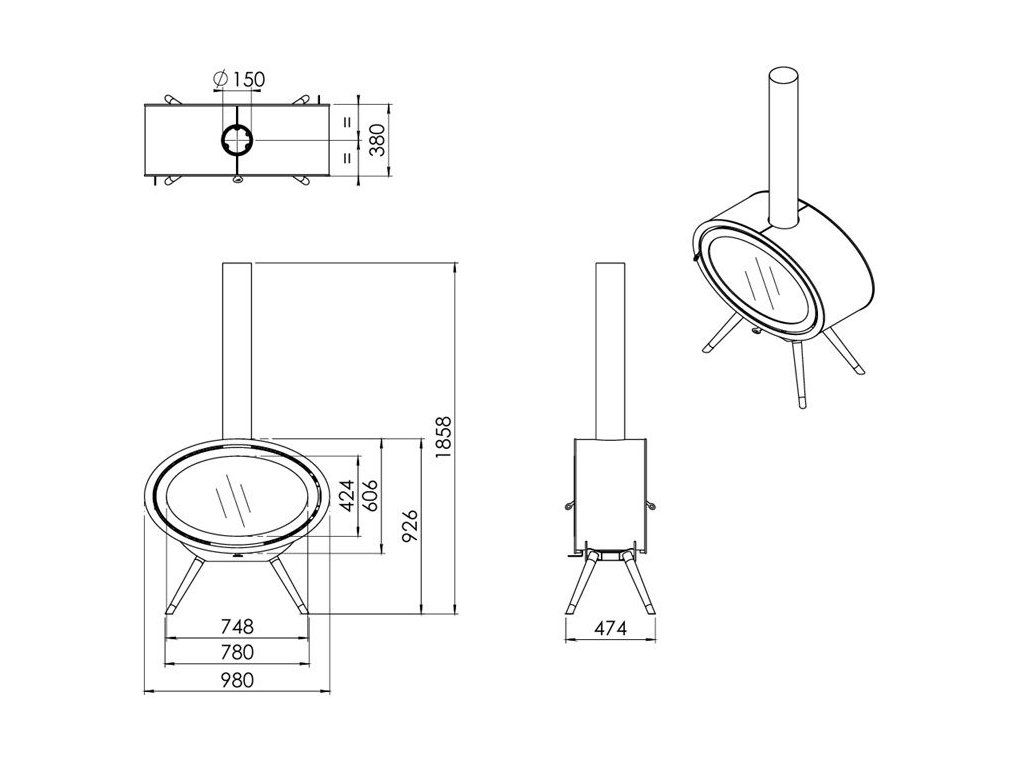 Verzia Tunnel je s dvomi čelnými sklami oproti sebe, Legs predstavuje krb na nožičkách. Interiér krbu je z vermikulitu v tmavom antracite, ktorý akumuluje teplo a zároveň tvorí krásny kontrast s plameňom, ktorý v ňom dokonale vynikne. Krb sa dodáva so špeciálnym sklom odrážajúcim teplo, čo zvyšuje účinnosť krbu a znižuje potrebu čistenia skla.