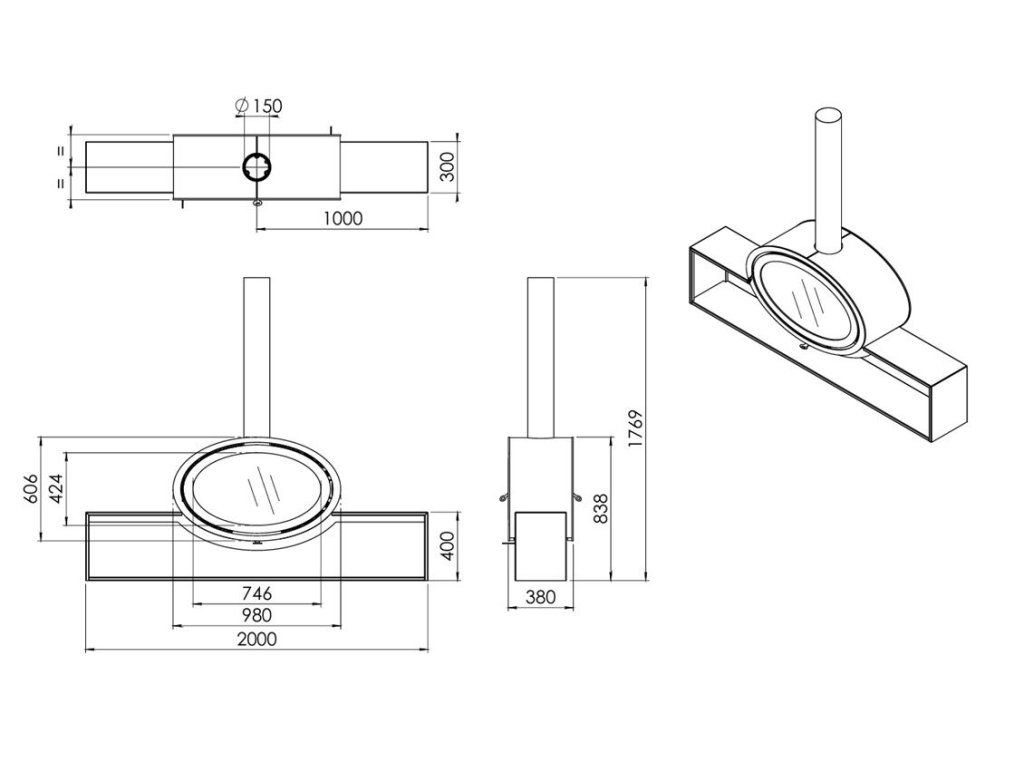 Verzia Tunnel je s dvomi čelnými sklami oproti sebe, Plateau je originálny priestor na odkladanie dreva. Interiér krbu je z vermikulitu v tmavom antracite, ktorý akumuluje teplo a zároveň tvorí krásny kontrast s plameňom, ktorý v ňom dokonale vynikne. Krb sa dodáva so špeciálnym sklom odrážajúcim teplo, čo zvyšuje účinnosť krbu a znižuje potrebu čistenia skla.