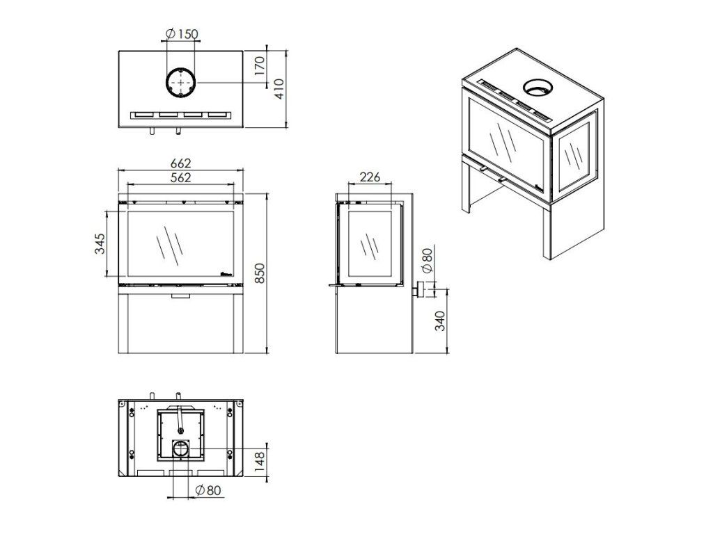 Táto verzia krbu Store má priestor na odkladanie dreva. Interiér krbu je tvorený z vermikulitu v prírodnom sfarbení, ktorý akumuluje teplo. Krb sa dodáva so špeciálnym sklom odrážajúcim teplo, čo zvyšuje účinnosť krbu a znižuje potrebu čistenia skla.